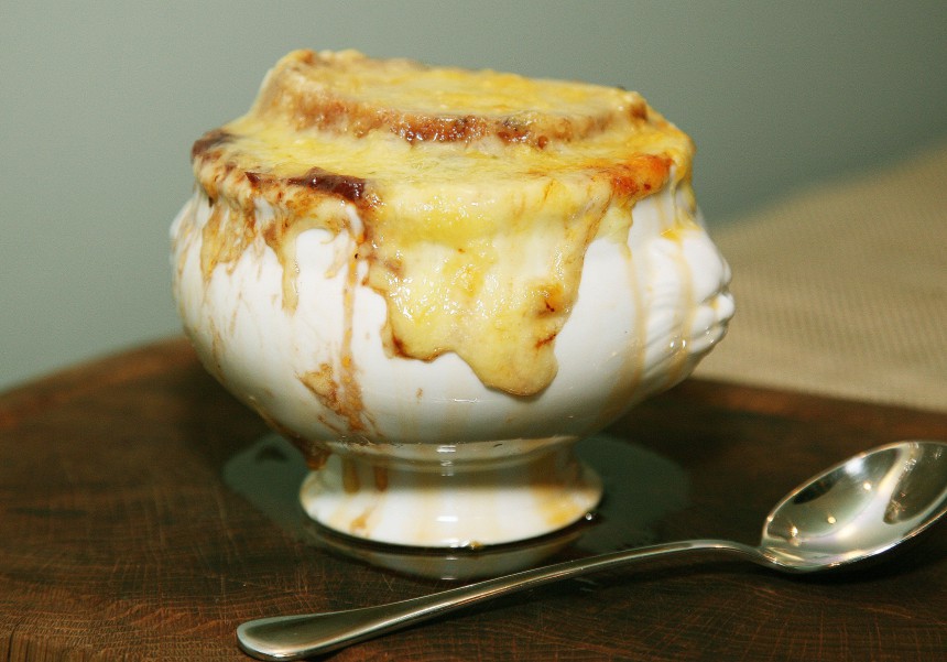 ...mīksti karamilizēti, dabīgi saldi sīpoli garšas niansēm piesātinātā buljonā, mazliet mikla, tomēr tikko jaušami kraukšķīga bagete un kārtīgi nogatavināts cietais siers, kas nu burbuļo šķīvī kā vesels lavas ezers... Verdošais šķidrums, pie lūpām likts, mazliet dedzina muti, tomēr ar izsmalcinātu vieglumu aiziet tālāk, un paliek bauda un sāta sajūta. Tādi tie ēdieni ar francisko izcelsmi ir: ikdienišķas sastāvdaļas, viegla, vienkārša, bet samērā ilga un nesteidzīga gatavošana, bet galarezultāts fantastisks! Protams, ar pusceptiem sīpoliem, nekur liekamu buljonu un lētu sieru ne to vien iespējams sabojāt! Recepti piedāvā restorāna Vincents pavārs Oskars Sprukts.