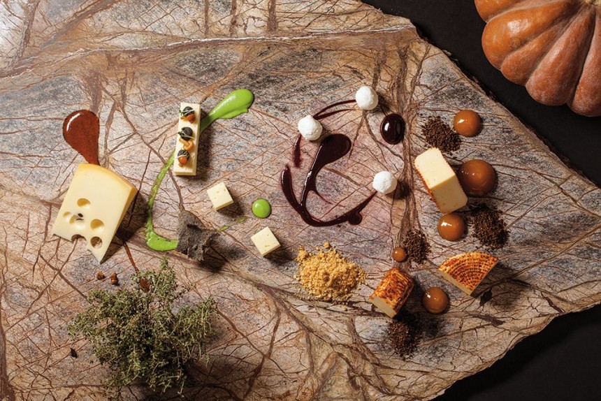 Atceries par noslēguma knifu – izrotā siera plati ar piparmētras, melisas, dažādu krāsu bazilika, timiāna vai rozmarīna lapiņām vai dažāda veida dārzeņu asniem u.c.