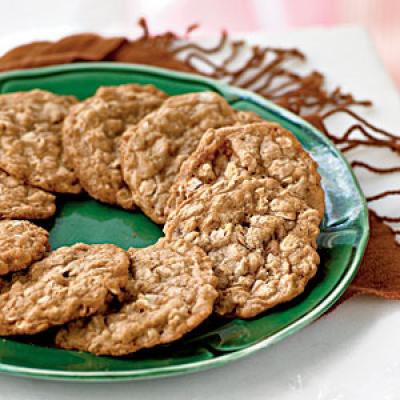 Pagatavošana: Vienā traukā sajauc miltus, auzu pārslas, sodu, sāli. Tas iecilā izkausētā sviestu pie kura piejaukts sviests un cukurs. Pievieno olu un vaniļas ekstraktu, kā arī mandeles. Visu samaisa. Iegūto masu liek uz pannas un cep aptuveni 15 minūtes, kamēr cepumi kļūst zeltaini rūni, ēd atdzesētus.