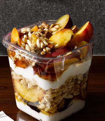 Liek visu kārtās – vispirms jogurts, tad augļi, rieksti, sīrups vai medus, tad atkal jogurts, augļi, rieksti un medus