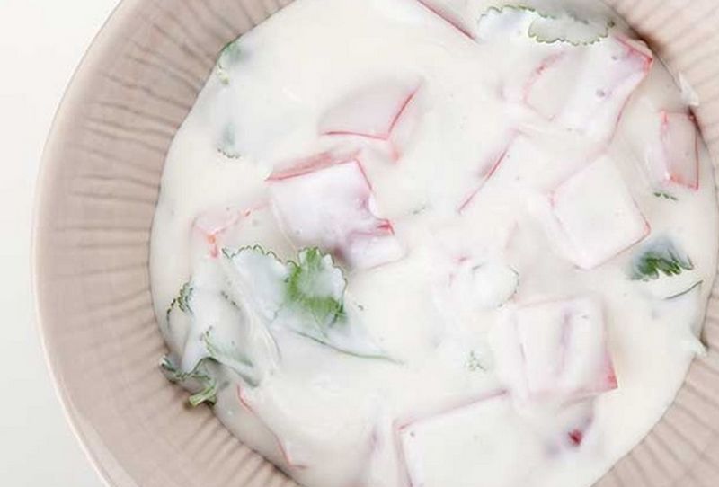 Pagatavošana: apcep papriku. Sajauc jogurtu ar citrona sulu, pievieno sāli, papriku un sasmalcinātu koriandru. Labi samaisa.
