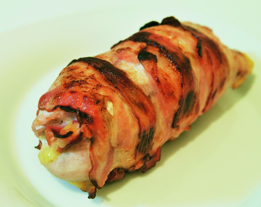 PAGATAVOŠANA: katru fileju horizontāli sagriež trīs apmēram vienāda biezuma šķēlēs, pārklāj ar plēvi un ar gaļas āmuriņu izdauza. Katru filejas šķēli pārsmērē ar krēmsieru, virsū uzber sīkos kubiņos sasmalcinātas paprikas kārtu un šķipsniņu sasmalcinātu zaļumu. Šķēles cieši satin ruletītēs, katru ruletīti ietin bekona šķēlē, sastiprina ar koka irbulīšiem. Ruletītes saliek ietaukotā pannā vai cepamtraukā un liek iepriekš uzkarsētā cepeškrāsnī, 180 grādu temperatūrā cep apmēram 30 minūtes. Īsi pirms gatavības cepeškrāsni izslēdz, bet ruletītes uz minūtēm piecām vēl atstāj, lai bekona mundierītis mazliet iegūst to neatvairāmo kraukšķīgumu.