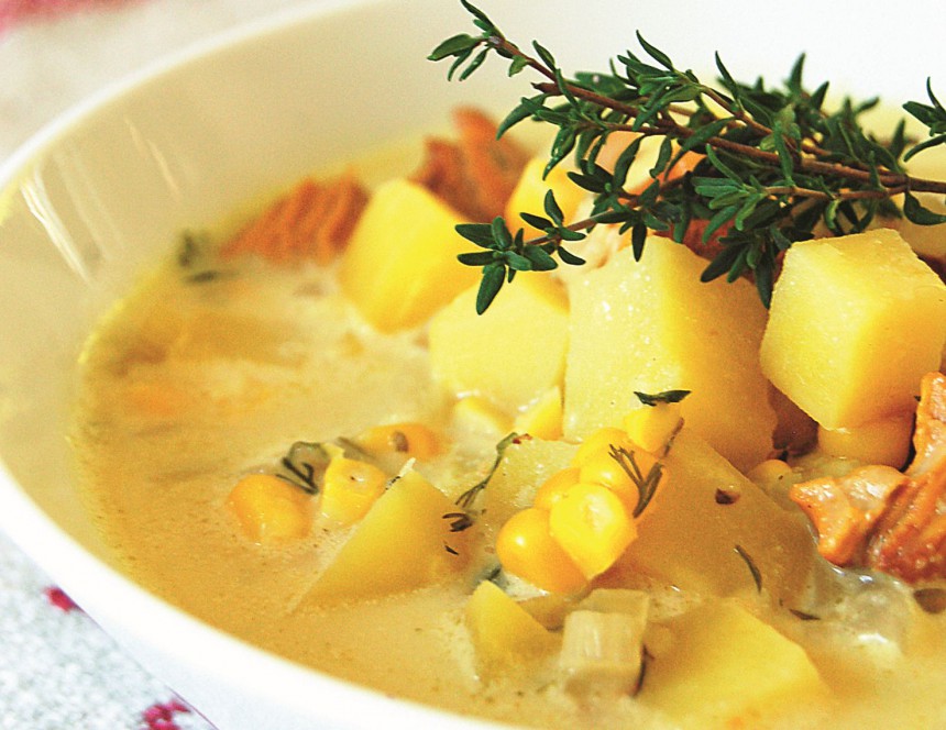 PAGATAVOŠANA: atsevišķi apcep gailenes, burkānus un sīpolus. Visus apceptos produktus liek katliņā, kur jau vārās gabaliņos sagriezti kartupeļi. Kad sēnes un visi dārzeņi gatavi, katliņa saturam pievieno kausēto sieru, sāli, piparus un garšvielas pēc katra gaumes.