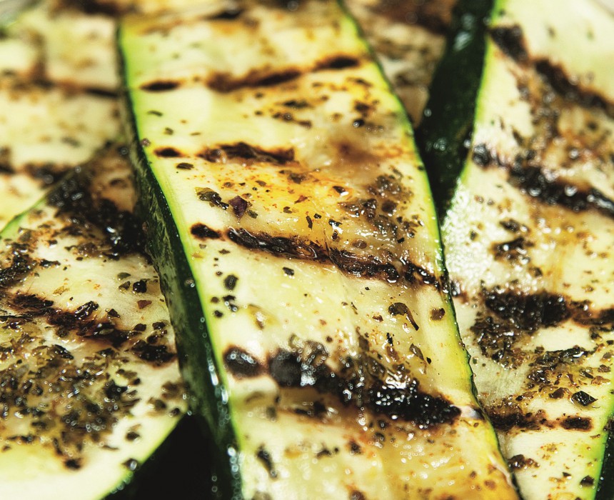 Kabačus cep uz grila restītēm no abām pusēm.