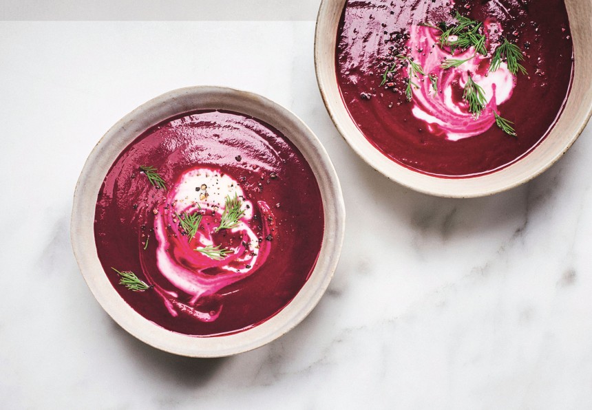 Pagatavošana: katliņa dibenā olīvu eļļā apcep sagrieztu sīpolu, pievieno bietes, buljonu, balzametiķi un jāņogu sulu. Uzvāra, 2–3 minūtes pavāra, ar blendera palīdzību pagatavo viendabīgu biezu zupu. Līdz pasniegšanai tur siltumā, lej šķīvjos, uzkaisa zaļumus. Grauzdiņus gatavo šādi: maizes šķēlītes pārziež ar olīvu eļļu no abām pusēm un liek cepeškrāsnī 200 grādu temperatūrā, līdz tās kļūst kraukšķīgas; katrai šķēlei virspusi ieziež ar spiedē saspiestiem ķiplokiem, uzliek sieru, ieliek atpakaļ cepeškrāsnī uz dažām minūtēm, līdz siers sāk kust.