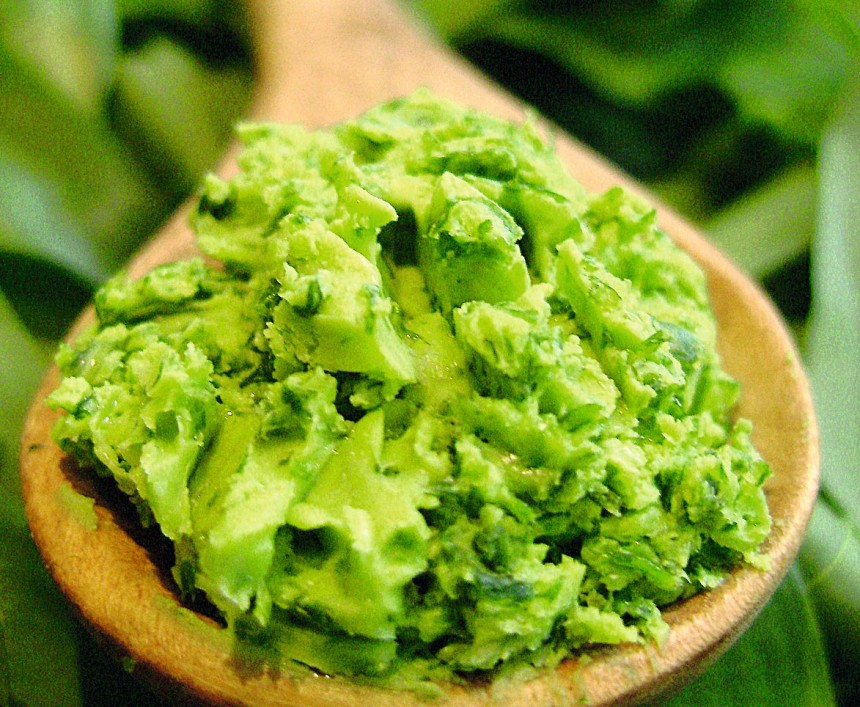 lakšus ļoti smalki sagriež, samaisa ar mīkstu sviestu, pēc garšas pievieno nedaudz sāls. Zaļo sviestu atdzesē ledusskapī. Pasniedz ar maizi, vārītiem kartupeļiem, sautētu zivi.
