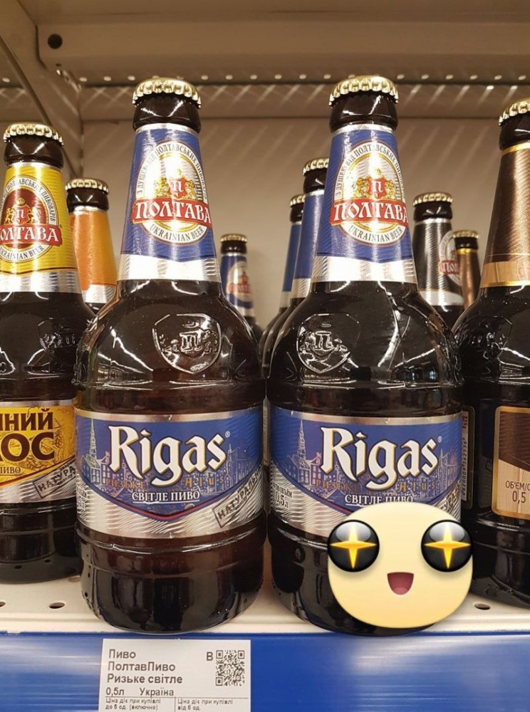 Kāds soctīklu lietotājs vārdā Aigars Jansons savā facebook.com profilā ievietojies amizantu attēlu, kur Ukrainas veikalu plauktos manīts ''Rigas'' alus. Zīmīgi, ka Latvijā šāds alus nav sasniedzis veikalu stendus.