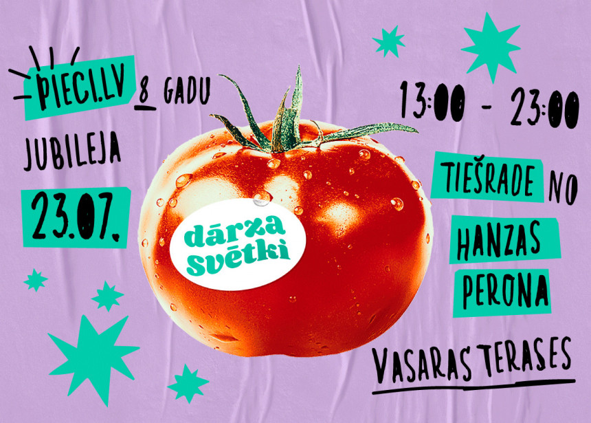 Svinot Latvijas Radio 5 - Pieci.lv astoto jubileju, šo piektdien, 23. jūlijā, no pulksten 13 līdz 23 notiks dārza svētki. Iepriecinošākā vēsts – ieeja bez maksas! Daudzus neiepriecinošā vēsts – kovidsertifikāts gan būs vajadzīgs.