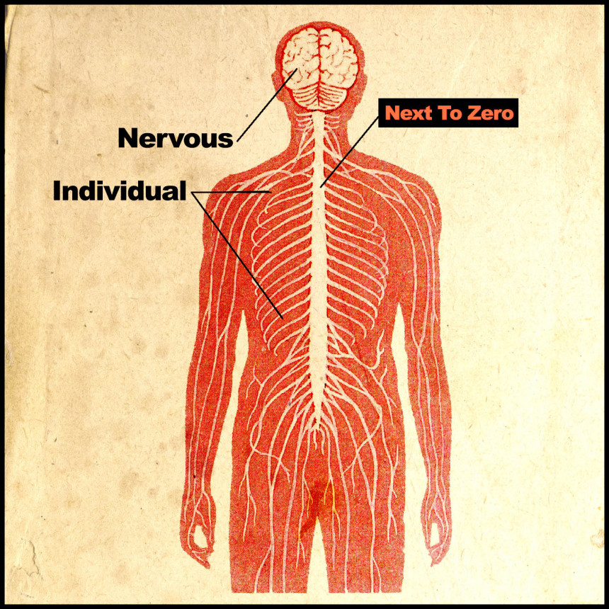 Interesantākais “Next To Zero” sakarā vismaz pagaidām r tā sastāvs - šis projekts ir alternatīvā/indī roka duets, kurā darbojas bijušais grupu “Mary Jane” un “Backflow” vokālists un basģitārists Jānis Grants, kā arī bijušais latvju repa pirmrindnieku grupas “Fact” ģitārists Jānis Kalniņš jeb Gonza. Albums ierakstīts grupas izolācijas pandēmijas laikā savā studijā, kas bez šaubām ietekmēja tā skanējumu. “Nervi čupā! Šī kompozīcija raksturo situāciju, kurā esam nonākuši, kad šobrīd pasaulē notiekošais ietekmē jebkuru no mums, padarot visus par “nervous individual”,” jauno singlu komentē grupas dalībnieki. Ja par “Next To Zero” stilistisko ievirzi, tad to pavisam īsi varētu raksturot tā - “Mary Jane” un “Backflow” labāko tradīciju garā.