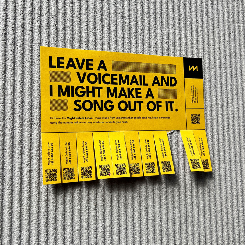 Might Delete Later ir interesants elektroniskās mūzikas projekts, kurā balss pasta ziņas tiek pārveidotas par deju mūziku. Ar īpašu publisku tālruņa līniju, kur ikviens var atstāt balss ziņu, šis projekts jau sasniedzis vairāk nekā piecus miljonus straumējumu platformā “Spotify”.