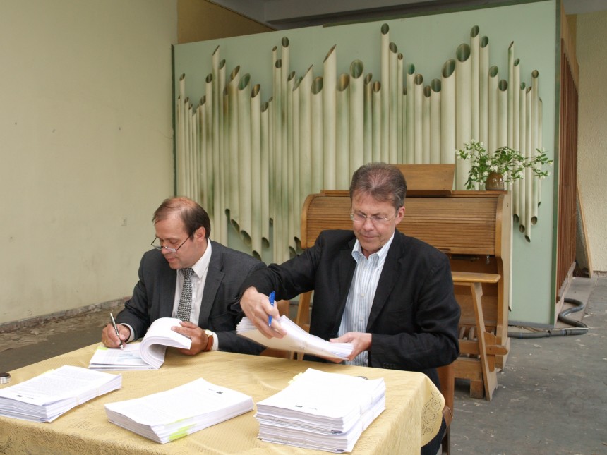 Šonedēļ Cēsu novada domes priekšsēdētājs Gints Šķenders un akciju sabiedrības UPB prezidents Uldis Pīlēns parakstīja apjomīgu līgumu par Cēsu kultūras centra rekonstrukcija būvdarbu veikšanu. Līgums simboliski tika parakstīts vecā Kultūras centra ērģeļu zālē un līguma summa ir 7 887 939 latu, ieskaitot PVN.