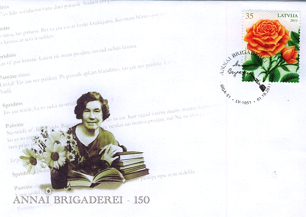 Par godu populārās latviešu literatūras klasiķes Annas Brigaderes 150.gadadienai, Latvijas Pasts laidis klajā speciālu aploksni, kurā attēlota izcilā personība. Aploksnes pirmās dienas zīmogošana norisināsies rakstnieces dzimšanas dienā, 1.oktobrī, pasta centrā Sakta, Brīvības bulvārī 32, Rīgā, no plkst. 8.00 līdz 18.