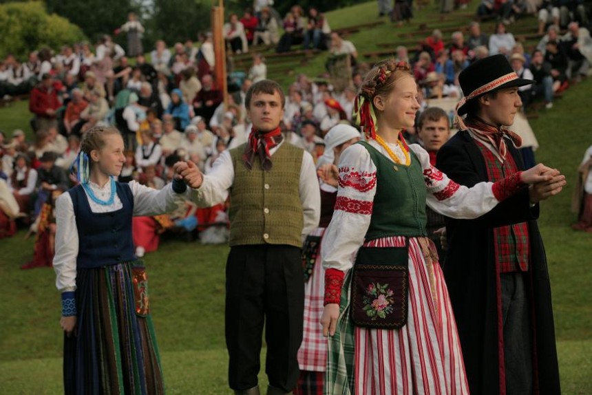 Tur plkst. 13.30 koncertā „Krustcelēs” satiksies 28 folkloras kopas un etnogrāfiskie ansambļi no Kurzemes, Zemgales, Latgales, Vidzemes, Rīgas, kā arī Lietuvas folkloras kopas „KUPKINIS”, Itālijas folkloras grupas TERRE DEL SOLE, Bulgārijas tautas mūzikas ansambļa BISTRITSA, Izraēlas palestīniešu deju grupas un Ukrainas folkloras ansambļa ROZHANYCYA dziesmu un seno deju zinātāji.