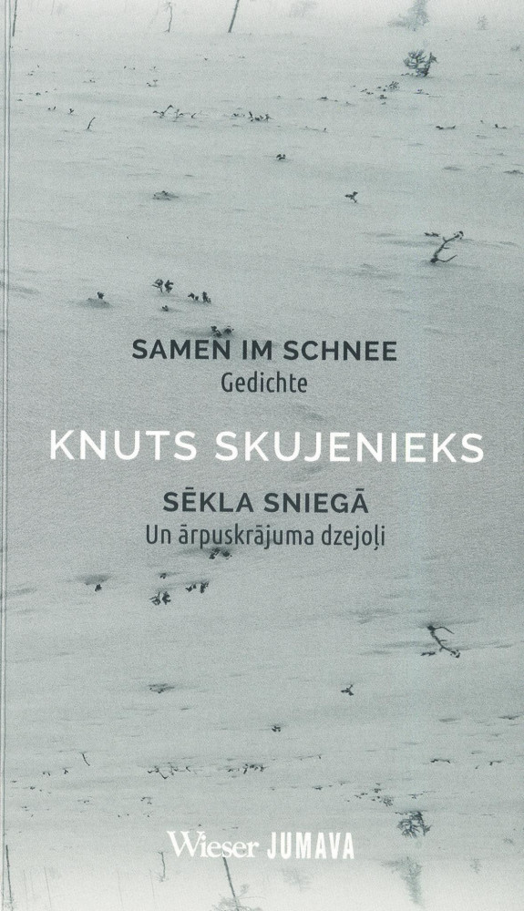 Sēkla sniegā ir Knuta Skujenieka ārpuskrājuma dzejas apkopojums vienā grāmatā, kas iepriecinās arī vācu lasītājus. Šis ir bilingvāls izdevums – tā vācu atdzejojumus sarūpējis vecmeistars Valdis Bisenieks. Knuta Skujinieka jubilejas gadam iesākoties, šī ir laba dāvana visiem viņa talanta cienītājiem – jācer tas nebūs vienīgais Skujenieka dzejoļu izdevums šogad.