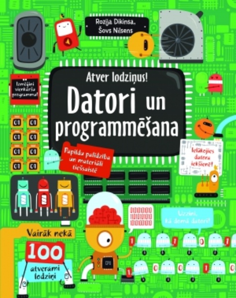 Vizuāli atraktīva un informatīvi kompakta grāmata, kurā vienkārši un saprotami izskaidrots, kas norisinās datoru iekšienē, kā darbojas datorprogramma un kā datori sazinās cits ar citu. Katrā lapā ir atverami lodziņi, kuros var rast atbildes uz daudziem jautājumiem, atklāt, kā datori «domā», kādu valodu «saprot» datori un kā ir šifrētas krāsas. Grāmatā ir vienkārši izklāstīti programmēšanas pamatprincipi, sākot ar vienkāršām komandām un beidzot ar algoritmu. Izpratni par blokshēmu gūst, apspēlējot virtuālu dārgumu meklēšanu. Grāmatā ievietotas dažas vienkāršas programmas valodā Scratch™ un arī norādes, kā darboties ar šo valodu. Piemērota bērniem no piecu gadu vecuma, lasot to kopā ar vecākiem. Grāmatā ievietotas interneta adreses, kurās bērni var atklāt jaunas programmēšanas idejas, dažādus padomus un spēles. Grāmatas beigās sniegts neliels ieskats datoru attīstības vēsturē.