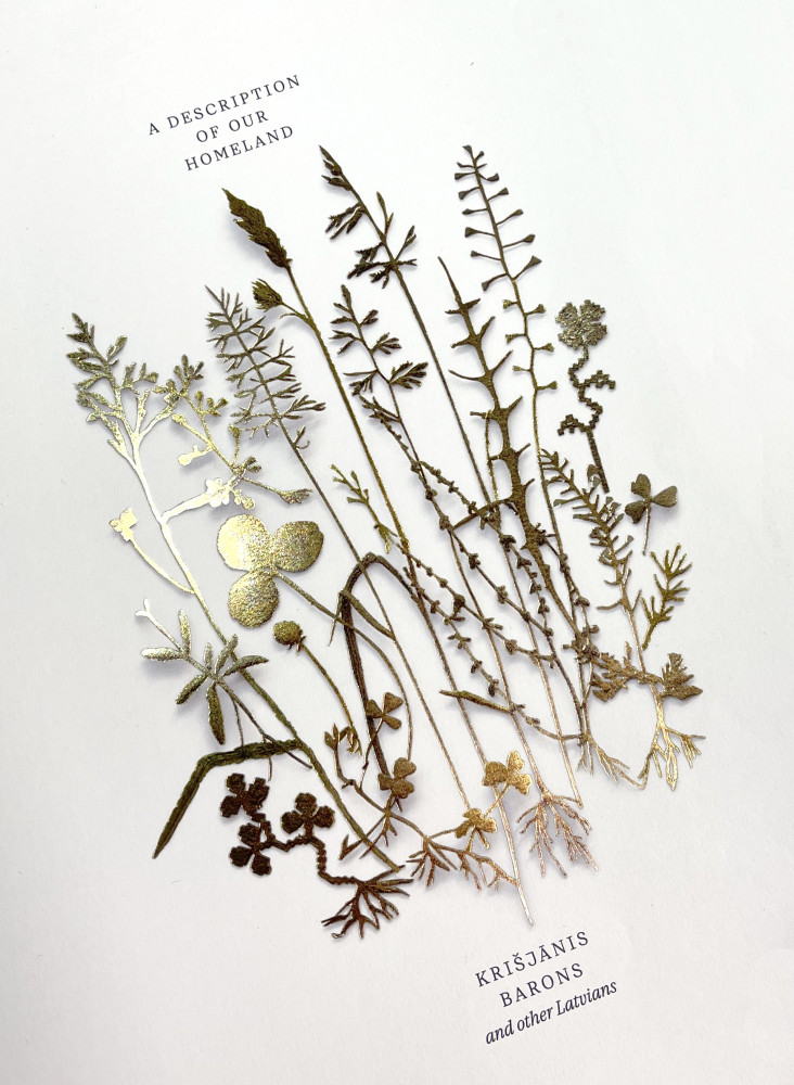 Izdevuma latviešu valodā dizains ieguvis zelta godalgu radošās izcilības festivālā “ADwards”, tādēļ angļu valodas grāmatas veidošana atkārtoti uzticēta dizaina studijas “Overpriced” komandai dizainera Aigara Mamja vadībā. “A Description of Our Homeland” vizuālajā noformējumā izmantoti tekstilmākslinieces Ievas Krūmiņas autortehnikā veidoti mākslas darbi - augu kopijas zeltā no PET materiāliem. Grāmatas māksliniecisko virzienu ietekmējis arī tās saturā esošais albums no Latvijas Nacionālā mākslas muzeja krājuma, kurā ir darbi no Vilhelma Purvīša, Jaņa Rozentāla, Ādama Alkšņa, Riharda Zariņa un citiem māksliniekiem. Grāmata papildināta ar vēsturisku mūsdienu Latvijas teritorijas karti no Latvijas Nacionālās bibliotēkas arhīva, kas rada priekšstatu par Baltijas reģionu 19. gadsimtā.