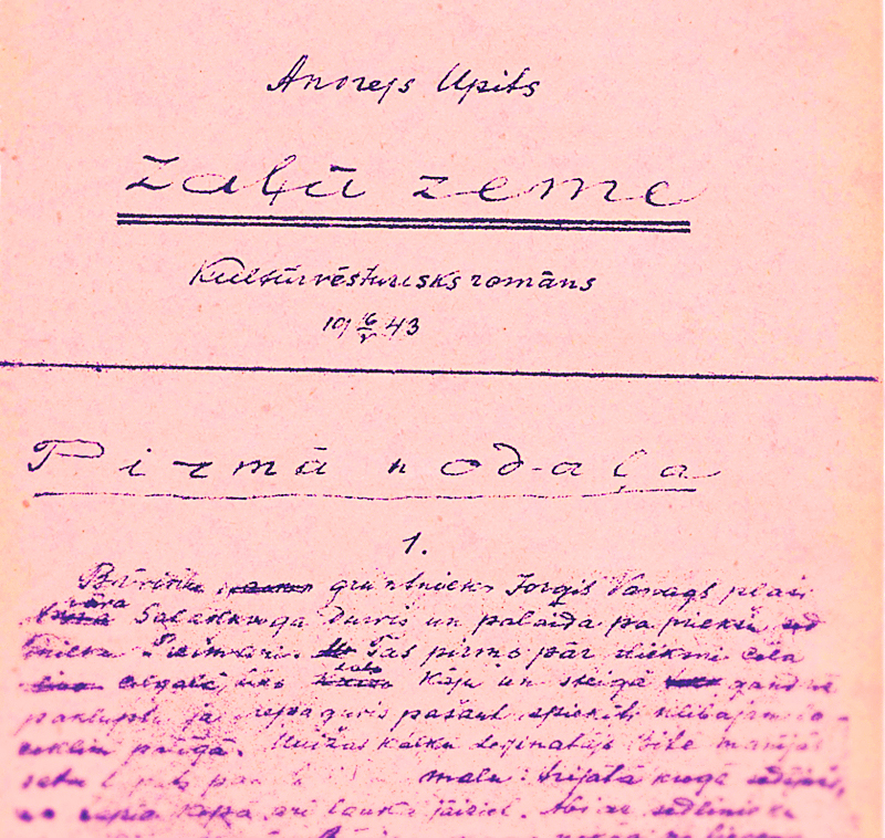Tā veltīta latviešu rakstnieka Andreja Upīša (1877-1970) 140. jubilejai. «93 gadus ilgajā, radoši piesātinātajā mūžā rakstnieks sarakstīja 21 romānu, desmit noveļu krājumu, divus dzejas krājumus, 30 lugu un dažus garstāstus, taču tieši romāns Zaļā zeme (1945) vairāku apstākļu rezultātā kļūst ne tikai par autora pazīstamāko darbu, bet arī paša rakstnieka vērtējumā nozīmīgāko artavu - ne velti Andrejs Upīts ir apgalvojis, lai viņam neliekot kapakmeni, jo viņa piemineklis ir mūža darbs - romāns Zaļā zeme.» Tā apgalvo izstādes rīkotāji un sola, ka tajā būs iespēja uzzināt par to, kā tapis romāna manuskripts. Kādēļ tieši Otrā pasaules kara laikā rakstnieks nolemj pievērsties savam bērnības laikam - 19. gadsimta nogalei? Kas notiek ar latviešu literatūru 20. gadsimta 40. gados? Kādēļ romāns ir rakstīts divreiz? Izstādi veidojis Andreja Upīša memoriālais muzejs (Memoriālo muzeju apvienība) un dizaina birojs H2E. Izstādes kurators - Mg. philol. Arnis Koroševskis. Tā bez maksas apskatāma līdz 16. decembrim.