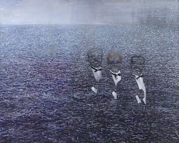 Izstāde „Pie Dzintara jūras”, kas apskatāma līdz 26. jūnijam, veidota no Latvijas Nacionālā mākslas muzeja kolekcijas pēdējo divu dekāžu mākslas darbiem. Tās nosaukums ņemts no Daces Lielās 1995. gada gleznas, kurā uz svina pelēkas jūras fona eksponējas trīs vīri smokingos. Viņu iznesīgā stāja, platos smaidos atrieztie zobi un priecīgie viepļi demonstrē pašapmierinātību un nekaunību. Māksliniecei šajos trijos, iespējams, reālajos personāžos izdevies fiksēt deviņdesmito gadu smalko aprindu sabiedrības portretu, kad jauno ekonomisko iespēju kriminālo tehnoloģiju piepratēji kļuva par cienījamiem cilvēkiem, sabiedrības krējumu, vienlaikus izceļoties ar provinciālu ārišķību, lielummāniju un bezgaumību. „Toreiz tika rīkotas smalkas balles, uz kurām brauca īrētos smokingos,” komentē māksliniece. Kā noprotams, izstāde vēlas parādīt laikmetu, atjaunotās, neatkarīgās Latvijas laiku.