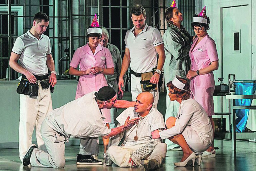 Artūrs Skrastiņš – Makmērfijs izrādē Kāds pārlaidās pār dzeguzes ligzdu DT (režisors Aleksandrs Morfovs)