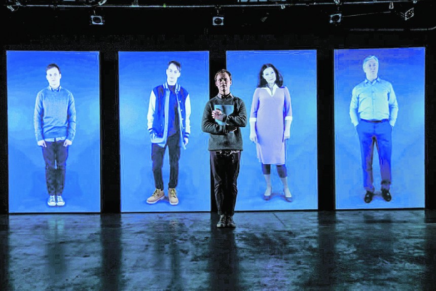 Gandrīz tukšajā spēles telpā (scenogrāfe, video koncepcijas autore Evija Pintāne) režisors atklāj radīšanas procesu – literārās personas sēž malā, neitrāli vērojot reālos jeb realitāti spēlējošos tēlus, un, kad pienāk to kārta, ienāk darbībā. Video (montāža – Linda Ģībiete) rādītie Klaudio, klasesbiedra Rafa un viņa vecāku tuvplāni pasvītro, kuras ir topošā stāsta darbojošās personas.