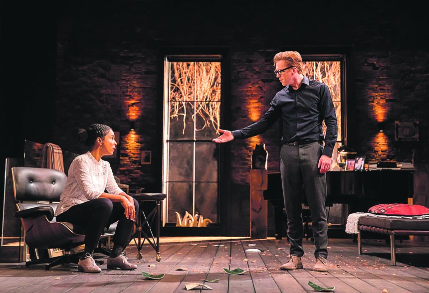 Režisora Iana Riksona iestudējuma darbība notiek viesistabā, kuras iekārtojumā uzsvērta daudzu mākslas priekšmetu klātbūtne - skulptūras, abstraktās mākslas gleznas. Reālās telpas robežas tiek paplašinātas tiešā nozīmē - pēc tam, kad Martina noslēpums ir izvilkts gaismā, viesistabas sienas tiek mazliet atbīdītas atpakaļ, tādējādi pajaucot īstenības ilūziju. Šis scenogrāfiskais risinājums ilustrē to, ka situācija tiešām izgājusi ārpus rāmjiem, taču vienlaikus arī rosina domāt par spēles motīvu šajā stāstā. Citu pārliecinošu ierosinājumu gan izrādē vairāk nav.