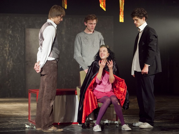 Joza Gruša lugas "Mīla, džezs un velns" izrādes režisori Velta un Vītauts Anuži lomas uzticējuši jaunajiem Liepājas teātra aktieriem,šī ir aktieru kursa diplomdarba izrāde.