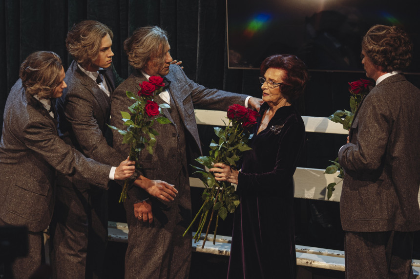 Pēc Broņislavas Mārtuževas dzejas fragmenta nolasīšanas teātra direktors Juris Žagars lūdz aktrisi apsēsties uz balta sola, kas teātrī saglabājies kopš Smiļģa laikiem un izstāstīt kādu epizodi no sadarbības ar viņu. “Esmu šeit sēdējusi gan lielos priekos, gan arī bēdās.