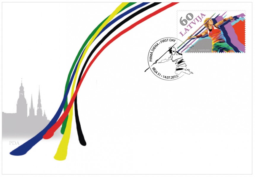 Ar pastmarku Šķēpmešana Latvijas Pasts uzsācis jaunas sporta tēmai veltītas pastmarku sērijas izdošanu, kas ir īpaši aktuāla, tuvojoties XXX Vasaras Olimpiskajām spēlēm, kas no 27.jūlija līdz 12.augustam risināsies Lielbritānijas galvaspilsētā Londonā.
