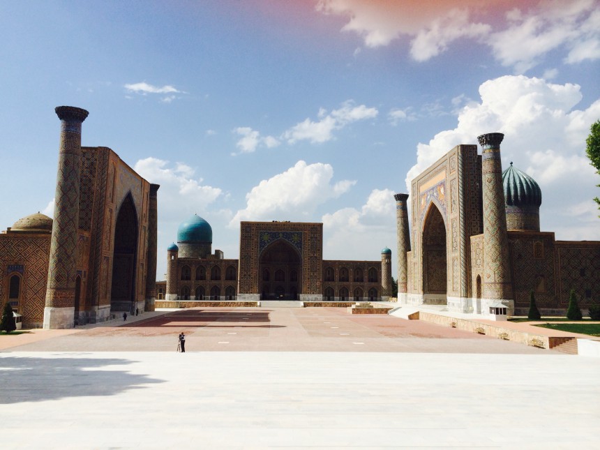 Uzbekistānas otro lielāko pilsētu Samarkandu var dēvēt arī par brīvdabas muzeju. Šī ir senās Romas līdzgaitniece, viena no vecākajām pilsētām pasaulē. Dibināta aptuveni 700. gadā pirms mūsu ēras, tā ir bijusi Zīda ceļa krustpunkts, viduslaiku Austrumu zinātnes un kultūras centrs, valdnieka Timura (dēvēta arī par Tamerlanu, 1336–1405) impērijas galvaspilsēta. Šķiet, ar valdnieka jeb emīra Timura vārdu saistās visas skaistākās celtnes šajā pilsētā, un nevar izskaidrot nevienas izcelsmi, neizstāstot kādu Timura dzīves detaļu. Timura milzīgā impērija un karagājieni aptvēra visu Vidusāziju, daļu Kaukāza, Afganistānu, Irānu. Viņš devās karagājienos uz Turciju, grāva Čingishana mongoļu Zelta ordu austrumos, iekaroja daļu Indijas, rietumos bija pat aizgājis līdz Maskavai, taču negaidīti pagriezās atpakaļ. Viņa talanti iesniedzas ne vien nežēlīgā un pārdomātā valsts pārvaldē, kā arī asiņainos karagājienos, bet arī pilsētu labiekārtošanā, ceļot mošejas un medreses. Slavenākā viņa laikā uzceltā mošeja ir Bibi – Hanumas mošeja, kas celta par godu viņa mīļotajai sievai. Milzīgajam mošejas kupolam bija jābūt pēc emīra pavēles celtam tā, lai tas būtu redzams no jebkuras vietas tā laika pilsētā. Ar šīs mošejas celtniecību saistās leģenda par emīra sievas attiecībām ar arhitektu, kamēr Timurs bija kārtējā karagājienā, bet nedomāsim ļauni – fakti liecina, ka viņai mošejas celtniecības laikā jau bija 60 gadu, tā ka diez vai tas bija kas vairāk par dvēseļu kopību. Pats emīrs bija ražens vīrs visos centienos, arī mīlas frontē – viņam bija 18 sievas un 37 bērni. No tiem karaliskajā statusā iekļāvās četri dēli – Timurīdu dinastijas turpinātāji – un vairākas princeses.