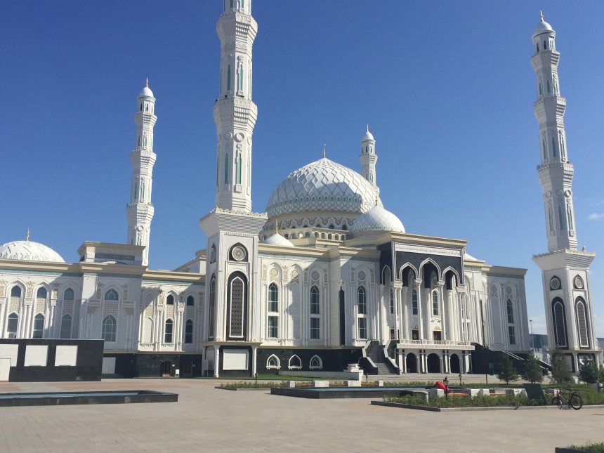 Lai gan Kazahstāna ir mūsdienīga valsts, kur reliģija ir atdalīta no valsts, tā ir piedalījusies daudzu baznīcu būvniecībā un padomju laikos izdemolēto baznīcu atjaunošanā. No reliģijām izplatītākā ir islāms, bet ir daudz arī pareizticīgo, ir vēl virkne citu reliģiju, kas miermīlīgi savā starpā sadzīvo. No tūkstošiem mošeju pēc padomju laikiem valstī saglabājās tikai apmēram 60 mošeju. Viena no iespaidīgākajām ir Hazrat Sultan mošeja, uzbūvēta 2012. gadā trīs gadu laikā. Tā ir lielākā mošeja Centrālāzijā, 51 metru augsta, neskaitot 77 metrus augstās minaretes, 28 metrus plata, ar līdz pat desmit tūkstošu dievlūdzēju ietilpību. Tā būvēta par savāktiem tautas ziedojumiem.