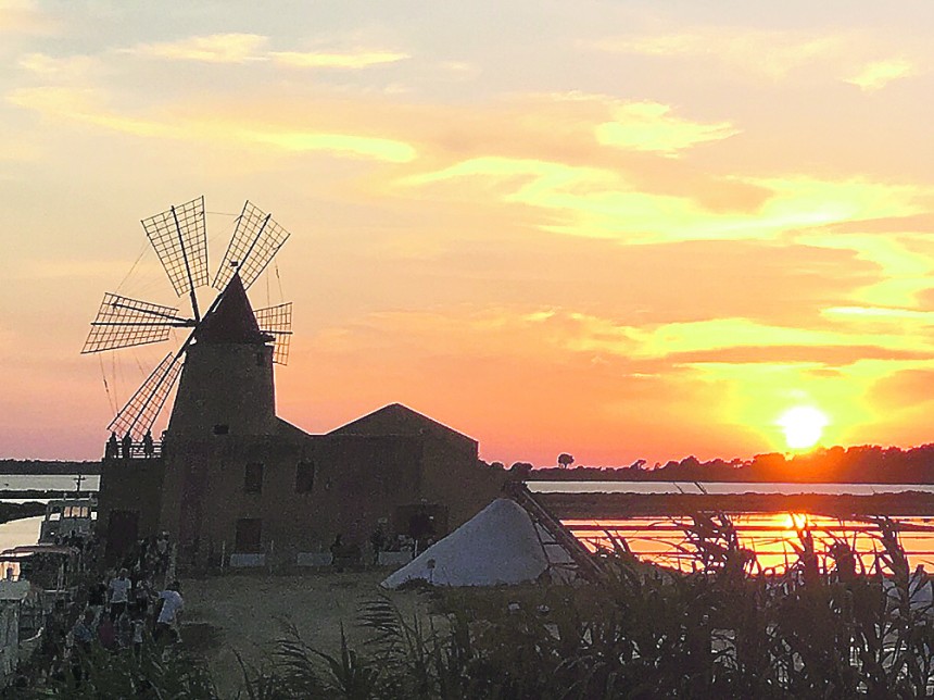 Daudzu gadsimtu garumā tieši sāls, dēvēts par balto zeltu, ir bijis vienīgais Rietumsicīlijas ekonomikas dzinējspēks, un, laikam ejot, tas turpina apburt ne tikai ar sāls kristālu izteikti balto krāsu un saules radītajām krāsu spēlēm, bet arī ar senajām ēkām un vējdzirnavām. Kā vēsta portals MySicily, tieši feniķieši bija tie, kas, novērtējot šīs teritorijas ģeogrāfiskās (ļoti sāļš jūras ūdens, lēzena piekrastes teritorija) un klimata priekšrocības (spēcīgi vēji, ilgas, karstas un sausas vasaras), apmēram pirms 3000 gadiem izveidoja sāls rezervuārus un uzsāka jūras sāls iegūšanu. Ar kāpumiem un kritumiem sāls ražošana ir turpinājusies visu laiku, un šobrīd piekrastes teritorijā, kas sniedzas no Trapāni līdz Marsalas pilsētai, atrodas virkne darbojošos sāls rezervuāru. Sāls ražošana ir smags roku darbs, pārlāpstojot sāli no viena rezervuāra otrā (kopumā ir četri rezervuāru veidi), un galaprodukta iegūšana ir iespējama divas līdz četras reizes gadā. Pie senajām sāls dzirnavām Marsalā ir neliels veikaliņš, kur iegādāties sāli (ar dažādām garšām), pasēdēt krodziņā, izbaudot saulrietu, vai doties ekskursijā pa sāls rezervuāriem. Gribētāju ir daudz - apkārtējie ceļi ap pulksten 19 vakarā milzu ātrumā pildās ar automašīnām, no kurām lec ārā tūristi ar fotokamerām un telefoniem, lai steigšus iemūžinātu romantisko skatu. Pārdesmit minūšu - un viss… saules gaismas spēles sāls kristālos ir beigušās, un, laimīgi nopūtušies par krāšņā dabas skata baudīšanu, tūristi atkal sēžas mašīnās, lai dotos tālāk pilsētas naktsdzīvē.