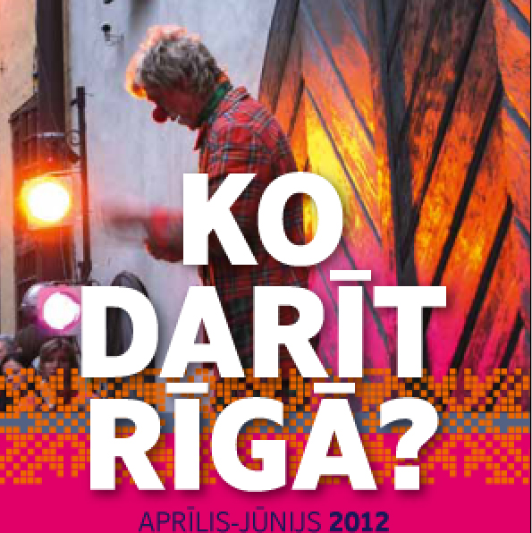 “Ko darīt Rīgā?” apkopota informācija par spilgtākajiem pasākumiem, koncertiem un izstādēm. Lai atvieglotu orientēšanos plašajā pasākumu un aktivitāšu klāstā, bukleta sākumā izveidots to kalendārs. Pēc tā pieejams plašāks pasākumu un aktivitāšu apraksts.