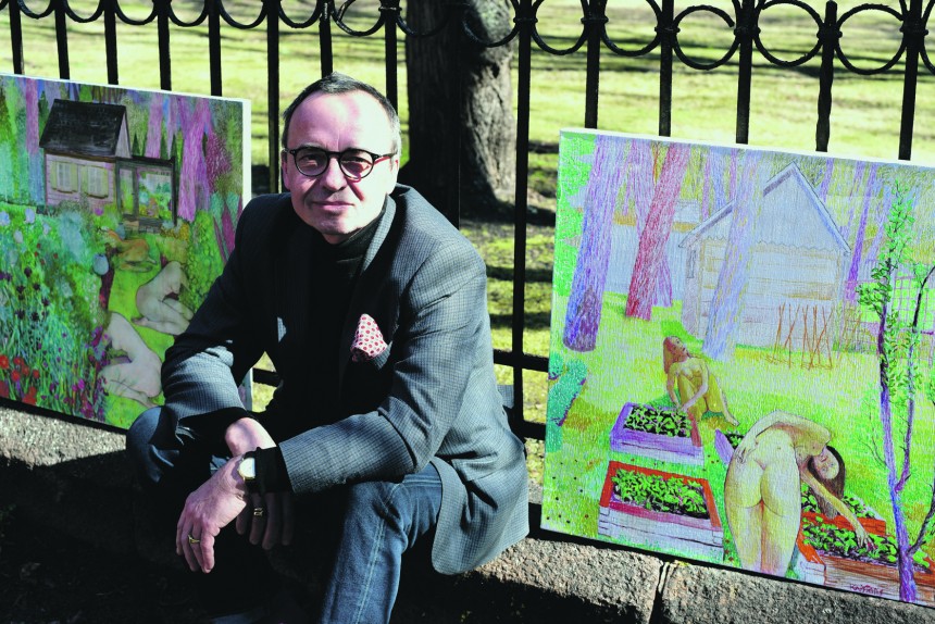 Ilgus gadus mākslinieka vasaras māja bija pie Āsteres ezera, bet tur bijuši daudz lielāki plašumi - zeme ap trim hektāriem, turklāt augsne bijusi tik auglīga, ka, kā mākslinieks teic, zemē varēja iespraust otu, un izauga roze. Pēdējos trīs gadus viņš ir prom no Rīgas un nu dzīvo Jūrmalā. «Dārzs liels nav, bet darba pietiek, jo ir jau cīņa - priedes ir skaistas, bet tās apēd augsni un atstāj baltu smilti, puķēm nemitīgi jādod ēst - gan zirgu mēslojumu, gan citu barību. Jūrmalā, kur ir baltā smilts, nemitīgi baltā smilts jāved prom uz kāpu un vietā jāliek auglīga zeme. Es neesmu liels dārza speciālists, šajā ziņā vairāk uzticos sievai. Mākslinieks ietekmējas no vides, kurā viņš atrodas. Šobrīd esmu vietā, ko ieskauj simtgadīgas priedes un apakšā ir oāze. Un tā rezultātā top gleznas.»