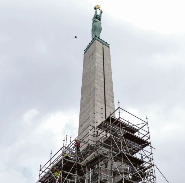 Brīvības pieminekļa apjošana ar stalažām jāpabeidz pirmdien, kad varēs uzkāpt vairāk nekā 40 metru augstumā un izpētīt monumenta tehnisko stāvokli. Rīgas pieminekļu aģentūras galvenais restaurācijas speciālists Ivo Graudums gan teic, ka negaidīti pārsteigumi diez vai būšot – nepieciešamie apkopes darbi ir zināmi, finansējums piešķirts. Netiek plānots arī papildu cīniņš ar putniem, kurus vairs nebiedē skaņas sensors.