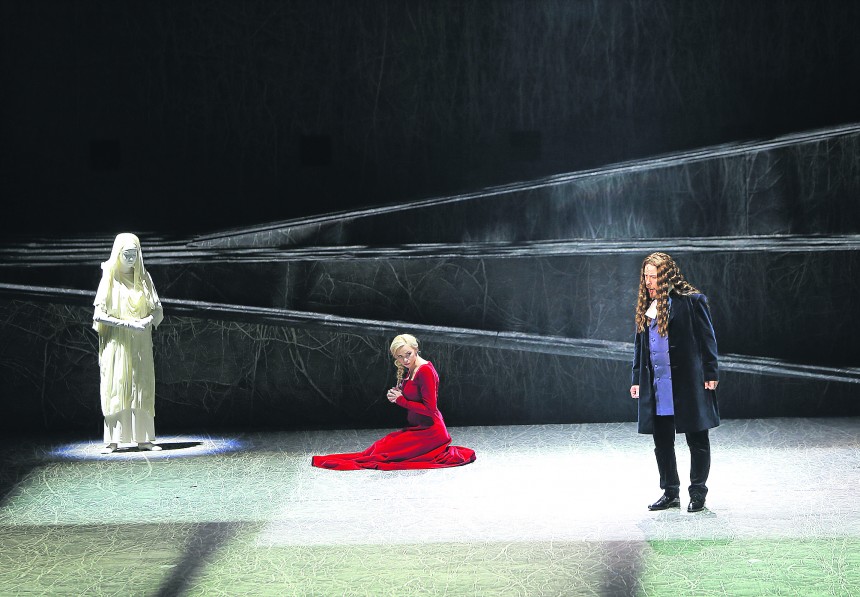 Jānis Apeinis un Rihards Mačanovskis šai lomai atraduši katrs savu atslēgu. Apeinis paļaujas uz dinamiskiem kontrastiem gan vokālā, gan emocionālā ziņā, pārsteidzot ar dziedošu legato liriskajās vietās un teju makabrisku ārprāta ainu, kulminējot fināla ārijā Ir mīla stiprāka par nāvi. Mačanovskim mazliet vēl grūtības sagādā augšējais reģistrs, tomēr dziedājums ir patīkami vienmērīgs, skaisti frāzēts, un ķermeņa plastika partnerībā ļauj noticēt Jakubovska cilvēciskajam vājumam vairāk nekā uzspēlētajai bravūrai. Interesanti risināts Greifa tēls, šo lomu arī pārrakstot baritonam, to stabili un pārliecinoši interpretē Armands Siliņš.