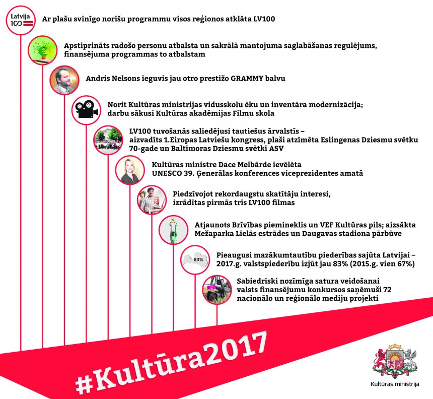 Kultūras ministrija izplatījusi savu redzējumu par gada nozīmīgākajiem notikumiem Latvijā, nosaucot desmit svarīgākos.