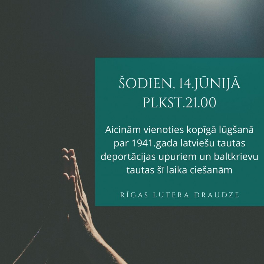 Šodien, 14. jūnijā plkst. 21.00 Rīgas Lutera evaņģēliski luteriskā baznīca aicina vienoties kopīgā lūgšanā par 1941.gada latviešu tautas deportācijas upuriem un baltkrievu tautas šodienas ciešanām