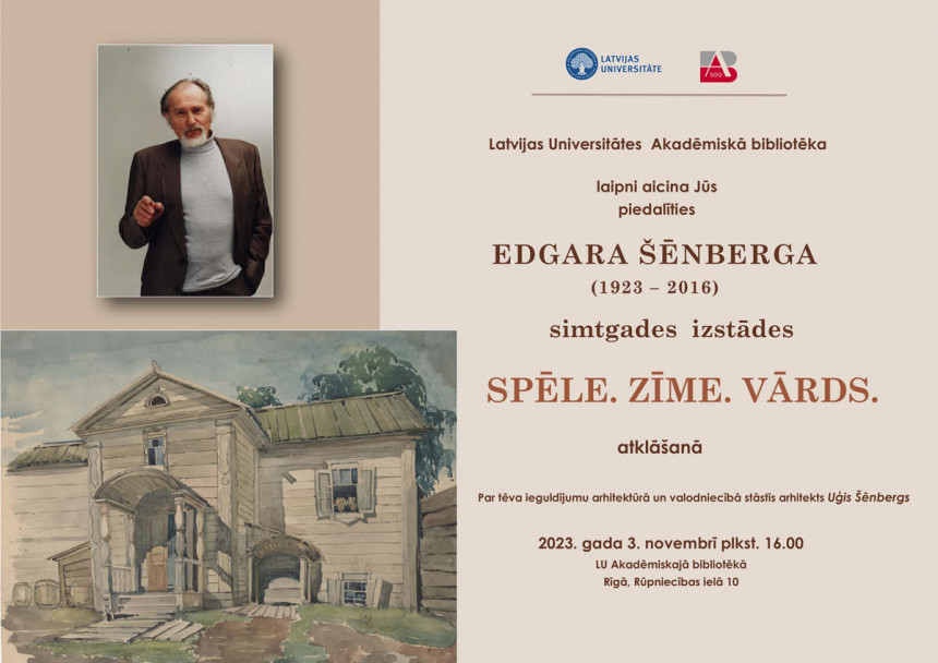 Izstādē tiks parādīta arhitekta, vietvārdu pētnieka un ķeltologa Edgara Šēnberga jaunrade - grāmatas, rokraksti, kartes, zīmējumi, akvareļi, fotogrāfijas un dokumentālā filma. 2023.gada 3.novembrī Uģa Šēnberga lekcijapar tēva ieguldījumu arhitektūrā un valodniecībā.