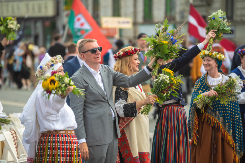 Prezidents uzrunā arī uzsvēra, ka svētkus veido dalībnieki, virsdiriģenti un virsvadītāji, kā arī vecāki un vecvecāki, kas satraucas un rūpējas par visu.