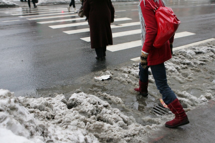 Atkušņa radītā peļķe teju vai paralizējusi gājēju kustību krustojumā pie Rīgas Centrālās dzelzceļa stacijas, kur ir lielākā gājēju plūsma pilsētā.