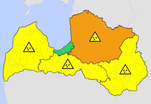 Latvijas Vides, ģeoloģijas un meteoroloģijas centrs informē par stipriem nokrišņiem Vidzemē, tāpat citviet pastāv plūdu draudi.