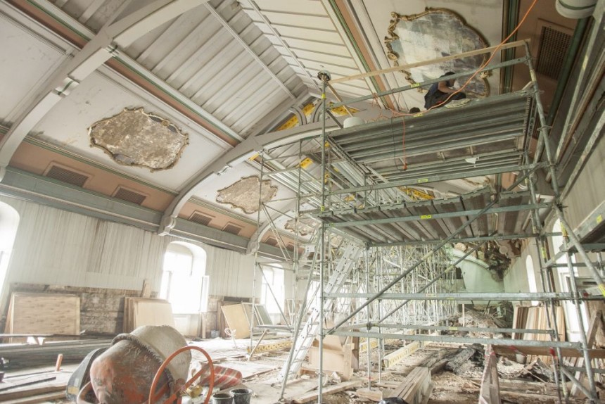 Būvnieki pakāpeniski izbūvējuši jumtu virs jūnijā ugunsgrēkā cietušajām Rīgas pils telpām. No nokrišņiem ir paslēpta Baltā zāle, Svētku zāle un pils Konventa daļa. Telpas atbrīvotas arī no ugunsgrēkā izdegušajām konstrukcijām, un Svētku zālē strādā restauratori.