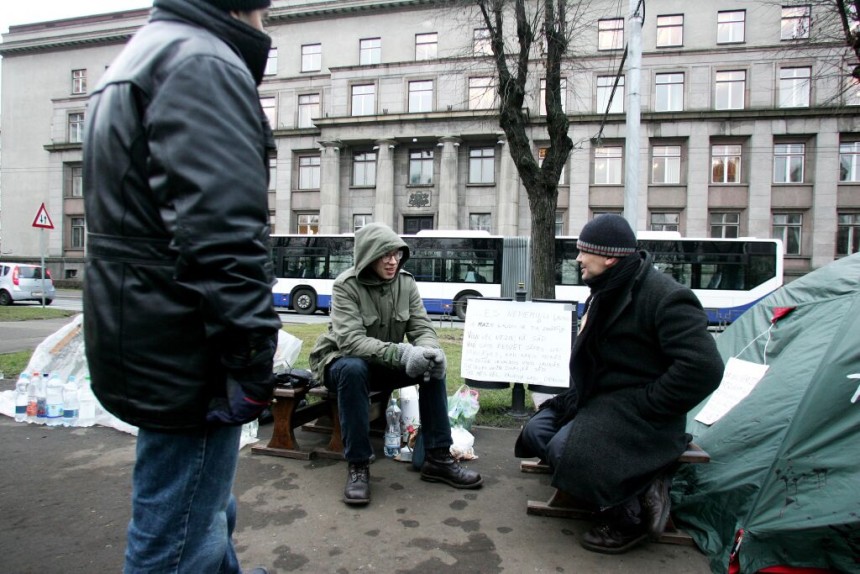 Šorīt iepretim Ministru kabineta ēkai uzceltas jau septiņas protestētāju teltis, kurās mitinās gan latviešu, gan krievu tautības cilvēki. Kā nra.lv norādīja protestētāji, valodai šeit neesot nekāda nozīme, jo viņu mērķis esot uzrunāt valdību.