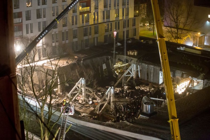 Plkst. 15.43 tika veikti kārtējie konstrukciju pārbaudes darbi, nobīdes nav, turpinās demontāžas darbi.