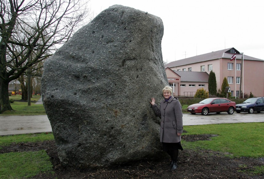 Kopš pagājušā gada rudens savu vietu pie pagastmājas, labi redzams garāmbraucējiem, ir atradis vasarā atrastais dižakmens. Pagasta pārvaldes vadītāja Anita Riekstiņa stāsta: «Realizējot ūdenssaimniecības attīstības projektu, būvnieki uzrakās šim milzīgajam akmenim, kas ir aptuveni 40 tonnu smags. Atradums raisīja diskusiju – vai aprakt to atpakaļ zemē, vai izcelt un nolikt turpat, vai arī pārvietot uz visiem labi pieejamu vietu. Kopā ar Dobeles novada būvvaldes vadītāju Jāni Kukšu uzskatījām, ka šādu skaistumu nedrīkst slēpt – tas ir jārāda visiem. 17. novembrī valsts svētku pasākuma laikā pie pagastnama akmens tika oficiāli atklāts apskatei. Man prātā palikuši vārdi, ko svinību reizē teica novada domes priekšsēdētājs Andrejs Spridzāns: novēlu, lai Latvijas valsts būtu tikpat stipra un mūžīga kā šis akmens.»