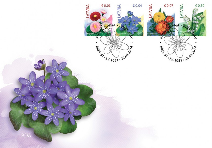 Eiro nominālvērtības standarta sērijas pastmarkās attēloti ziedi, un to autors ir mākslinieks Ģirts Grīva. Līdz ar jaunajām pastmarkām izdota arī pirmās dienas aploksne un zīmogs.