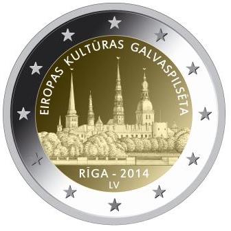 Eiropas Savienības Padome ir apstiprinājusi dizainu un 2014. gada 27. martā Eiropas Savienības Oficiālajā Vēstnesī publicēts paziņojums par pirmo Latvijas īpašā dizaina 2 eiro monētu, kas veltīta 2014. gada Eiropas kultūras galvaspilsētai Rīgai, informē Latvijas Banka.