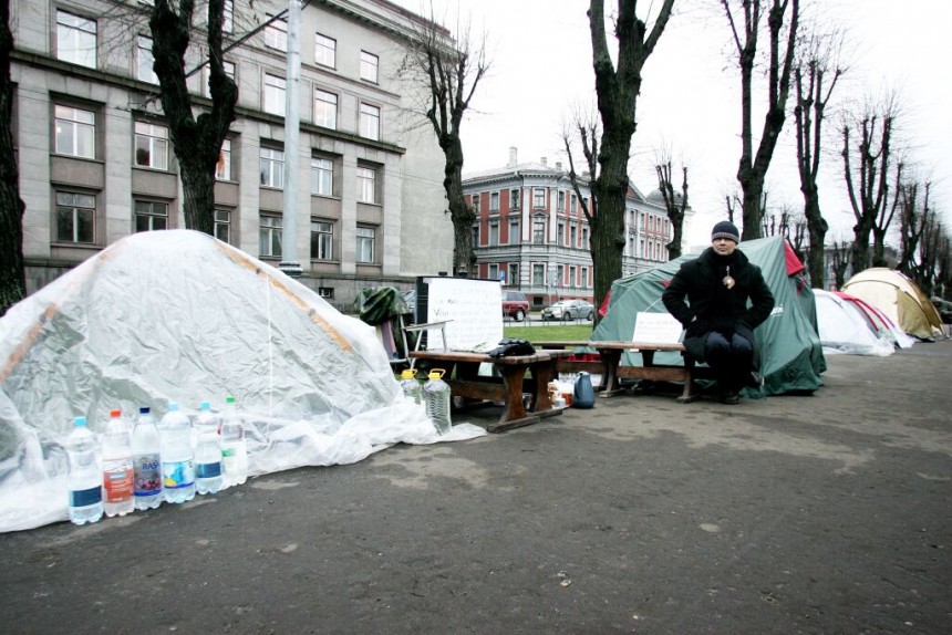 Pieci protestētāji šonedēļ teltīs pārlaida nakti, kurā gaisa temperatūra pazeminājās līdz gandrīz mīnus 20 grādiem.