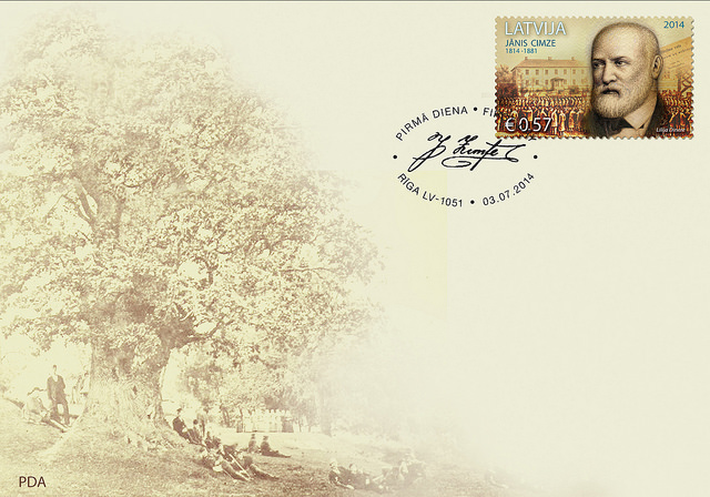 Atzīmējot izcilā latviešu kultūras darbinieka Jāņa Cimzes 200.jubileju, Latvijas Pasts izdevis jaunu pastmarku, kuras pirmās dienas zīmogošana notika tieši pedagoga un komponista dzimšanas dienā - 2014.gada 3.jūlijā.