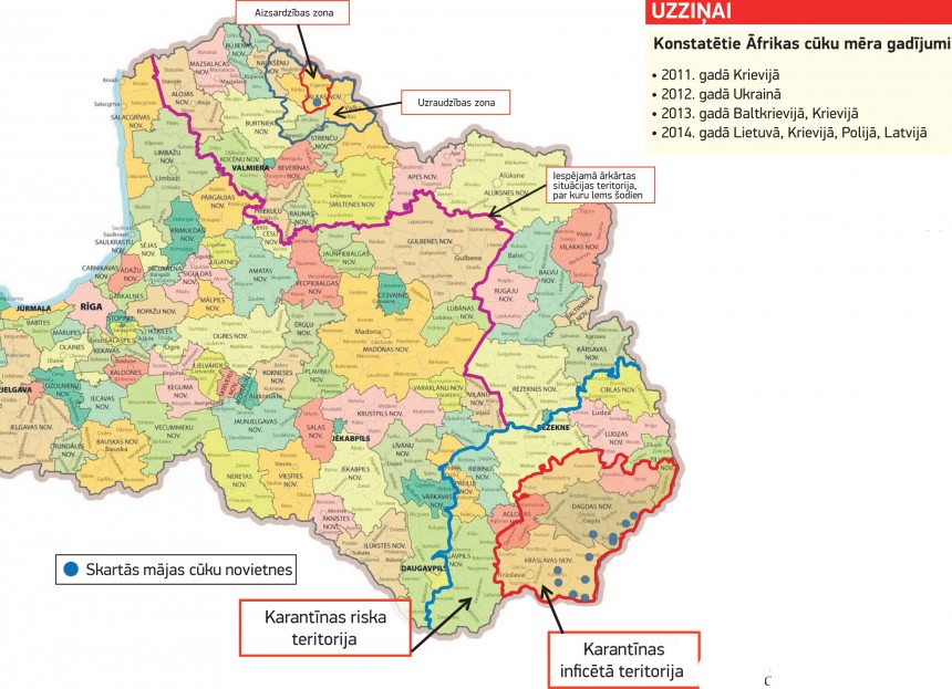 Āfrikas cūku mēris jau pirms dažiem gadiem uzliesmoja Krievijā, Ukrainā un Baltkrievijā, bet šogad arī Lietuvā, Polijā, Krievijā un nu arī Latvijā. Gada sākumā, kad Āfrikas cūku mēri konstatēja Lietuvā, zemkopības ministrs Jānis Dūklavs prognozēja, ka šī infekcija izplatās aptuveni ar 350–400 kilometru ātrumu gadā. Tas nozīmē, ka gadījumā, ja šo slimību neizdosies apturēt, nākamgad tā, iespējams, no Vidzemes un Latgales būs nonākusi jau līdz Kurzemei.